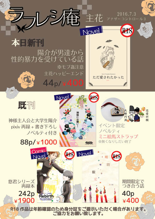 こちらのみ全年齢向けです。ペーパーのみの頻布もOKですのでお気軽にお立ち寄り下さい。