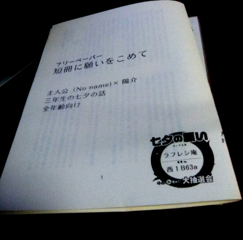七夕抽選会のロゴ入り主花SSペーパーを持って行きます。