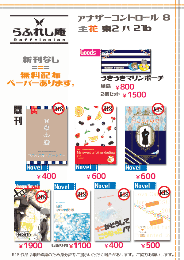 2/25に開催されるアナザーコントロール8のお品書きです。