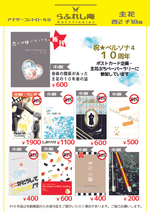 主花ポストカード企画と相棒十周年のペーパーラリーに参加します。数が無くなりしだい終了となります。(後日webにてUPする予定です)