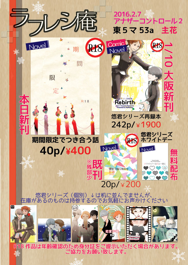 新刊「期間限定」R18 詳細は下の記事をどうぞ。